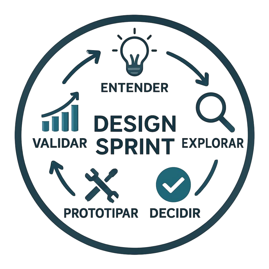 Valida tu visión: El Design Sprint transforma tus conceptos visionarios en prototipos tangibles. Tu equipo podrá crear experiencias inmersivas, crea bucles de retroalimentación de usuarios y refina tu idea, asegurando que germine en una base sólida para el éxito.